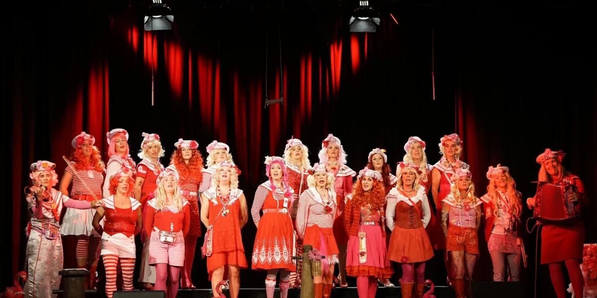 Ein verlockender Augen- und Ohrenschmaus: 25 aufgetakelte Shanteusen und ihr Kombüsenorchester vertäuen musikalisches Treibgut mit frechen Accessoires und charmanten Choreographien – eine einmalige, schrill-schräge Plankenshow zwischen Shanty-Chor, Dada und Fernsehballett.