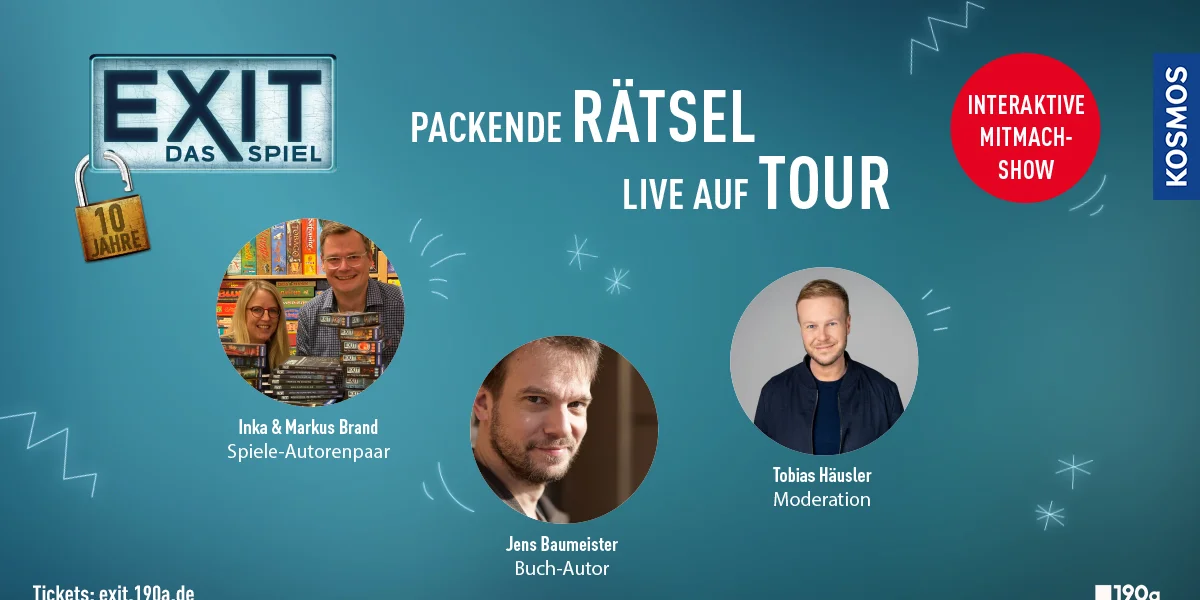 Bei der exklusiven Jubiläumstour in Stuttgart, Essen und Köln erleben die Besucher*innen eine interaktive Show rund um die Welt der EXIT-Rätsel. Mit dabei ist das