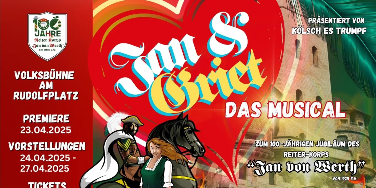 Dieses Musical ist in diesem Jahr besonders bedeutsam, da es zu Ehren des 100-jährigen Jubiläums des Reiterkorps Jan von Werth von 1925 e.V. aufgeführt wird. Ein Jahrhundert voller Tradition und kölschem Brauchtum wird gefeiert, und was könnte dieses Jubiläum besser würdigen als eine spektakuläre Bühnenaufführung, die die Geschichte von Jan und Griet lebendig werden lässt? Es ist die perfekte Gelegenheit, die Legende und das Erbe des Reiterkorps Jan von Werth hochleben zu lassen.